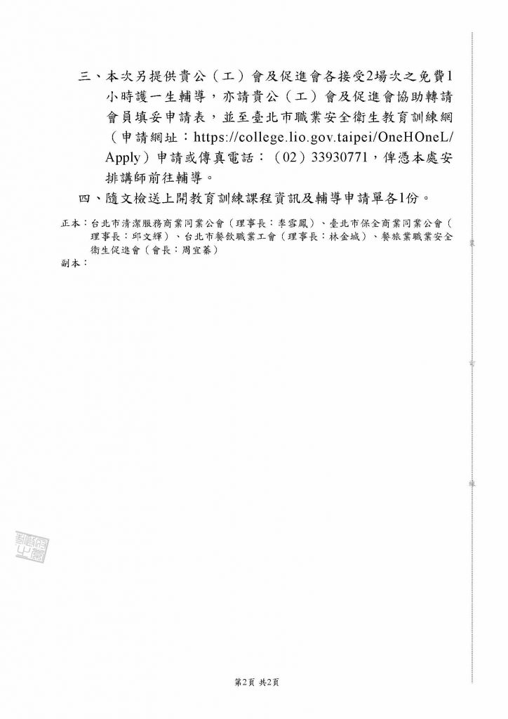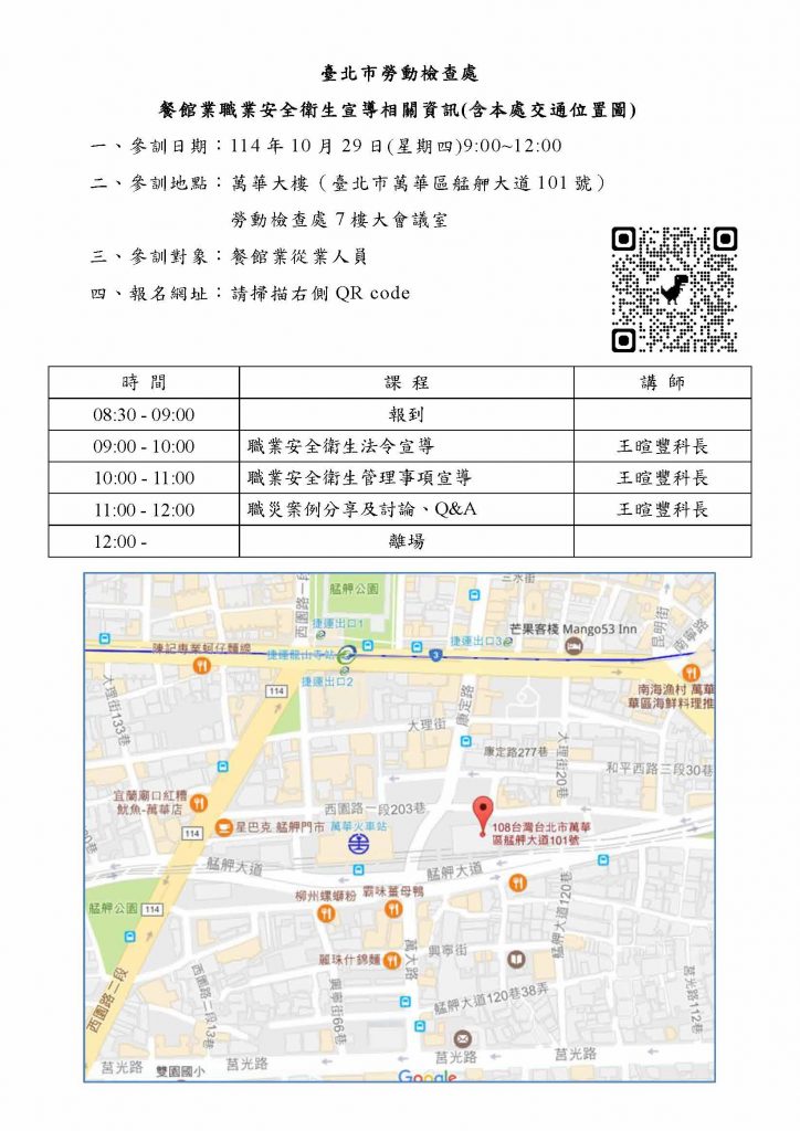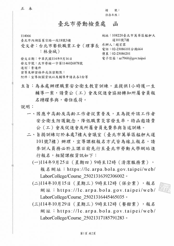 【轉知】臺北巿勞動檢查處函-職業安全衛生教育訓練公告,轉知會員踴躍報名