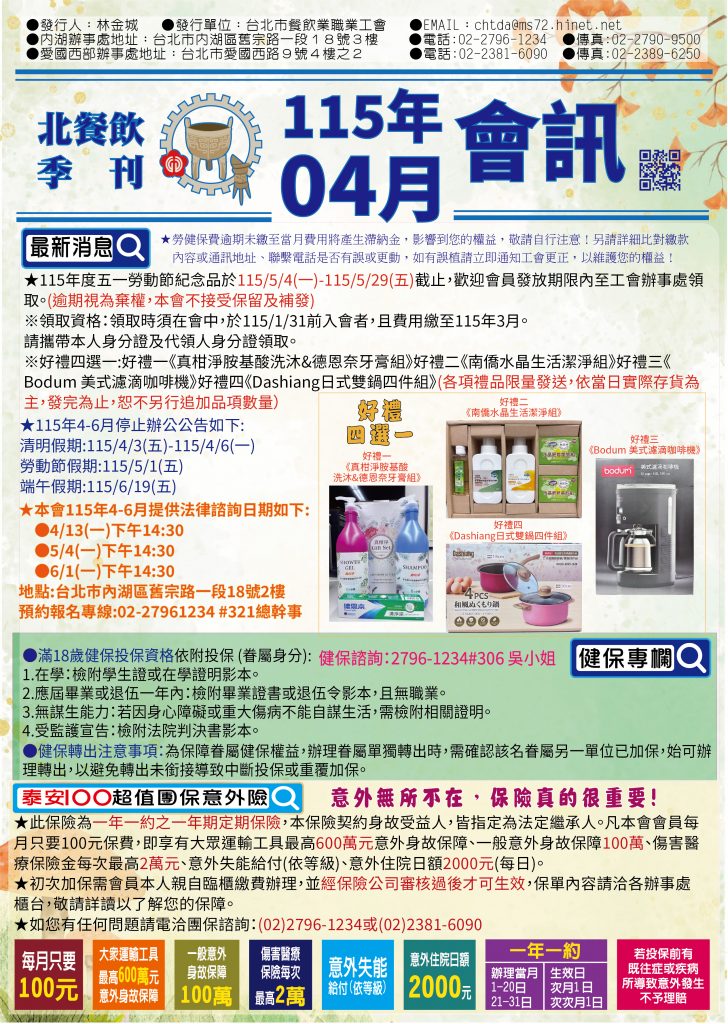 北餐飲季刊-工會會訊115/04期